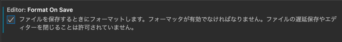 検索された項目の「Editor: format on save」にチェックを入れる。